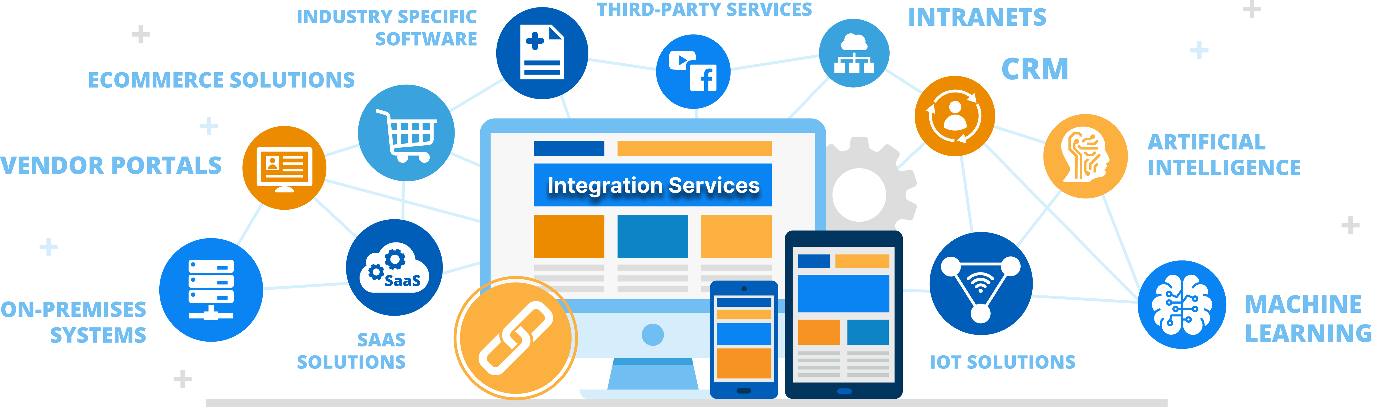 Businesses are evolving and becoming more and more demanding. Specialized software’s are required to remove the functional barriers and improve organizational efficiency. Many corporations are still using systems that serve their standalone needs and have a hard time in communication. This means that a lot of time is spent on validating data, entering data into multiple systems and gathering data from many different systems. Time spent on these kinds of mundane tasks could be spent on serving your company’s customers instead. Business Integration services give the ability to integrate the diverse data and information sources both within and outside your enterprise into a single coherent framework.